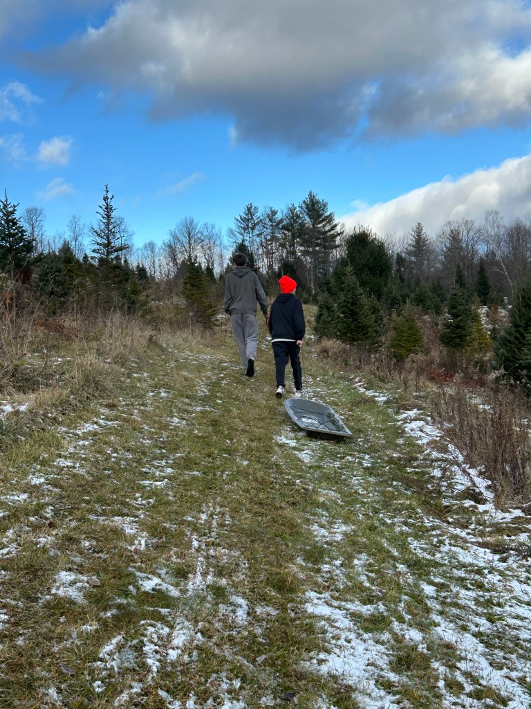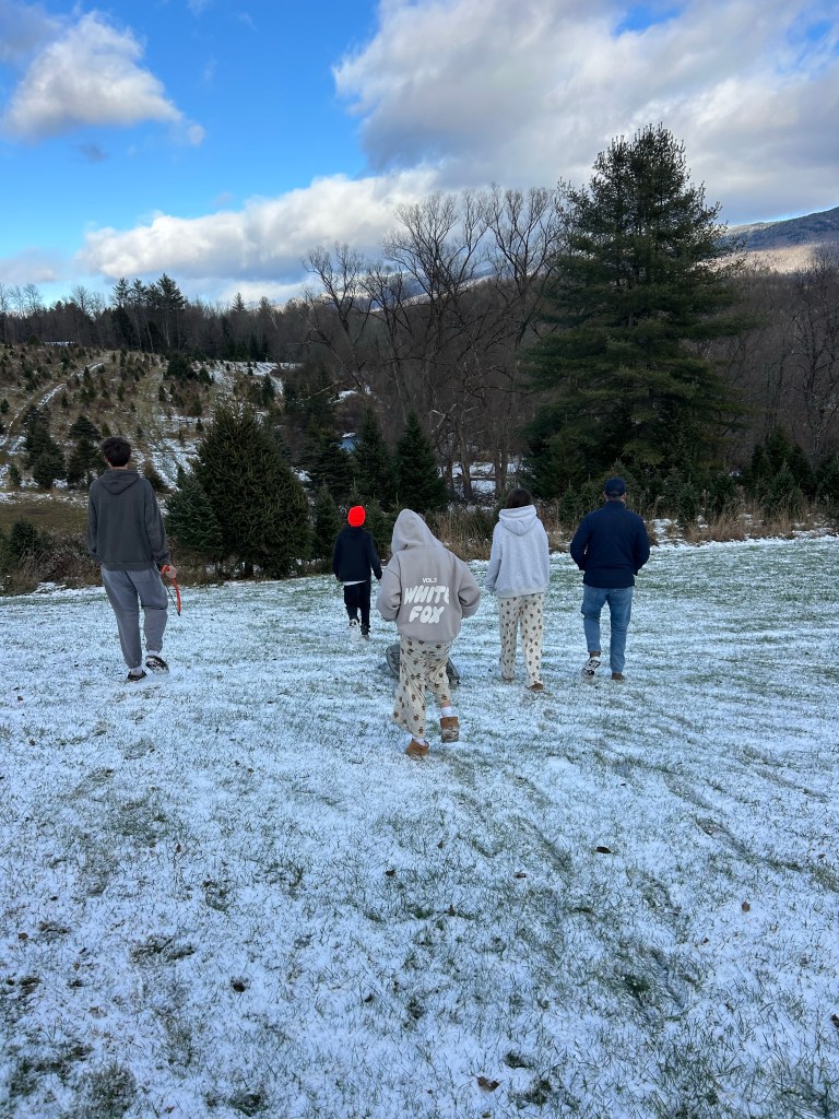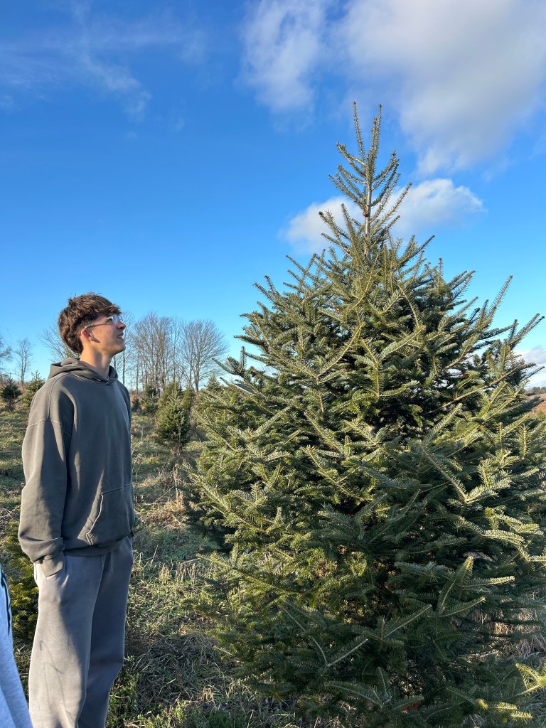 On our way home from Maine we stopped at two Xmas tree farms. We were looking for a taller tree this year. Finally found one!